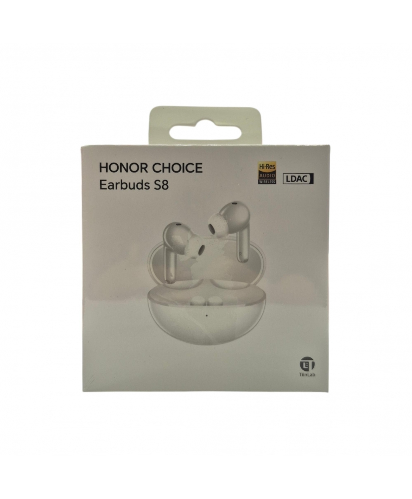 Los Honor Choice Earbuds S8 son auriculares true wireless compactos y ergonómicos con Bluetooth 5.4, sonido de alta calidad gracias a dos drivers (titanio y cerámica) y soporte de códecs como LDAC para un audio detallado; integran cancelación activa de ruido inteligente (hasta ~50 dB) y un sistema de tres micrófonos con algoritmo DNN que mejora el sonido de las llamadas, ofrecen hasta ~38 h de autonomía total con el estuche y carga rápida, controles táctiles, resistencia IP54 frente a polvo y agua ligera, y funciones como detección de uso y asistencia por voz para un uso cómodo y versátil a diario.