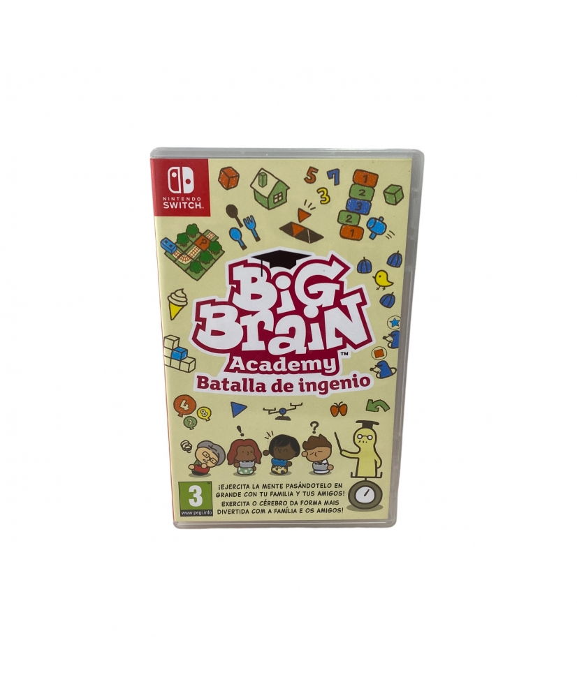 Compra Big Brain Academy Batalla de Ingenios y juega contra otros en divertidas e ingeniosas actividades diseñadas para que personas de todas las edades y niveles de habilidad tengan las mismas oportunidades de ganar. Pon a prueba tu ingenio y enfréntate al resto de jugadores en una serie de actividades divertidas y familiares que retarán tu capacidad intelectual y tus reflejos. Con el Dr. Azo (tu distinguido anfitrión y guía en el juego) siempre a atento con abundantes consejos y la posibilidad de que cada jugador establezca su propio nivel de dificultad, personas de todas las edades y niveles de habilidad podrán jugar unos contra otros en desafíos que pondrán a prueba su memoria, análisis, agudeza y mucho más. Además de los divertidos modos multijugador, Big Brain Academy: Batalla de ingenio también incluye opciones para un solo jugador en el modo Individual, perfecto para realizar ejercicios diarios que ayuden a afinar y mejorar tu puntuación de vigor cerebral. Estas actividades son una forma divertida de empezar el día o de relajarse por la noche. Y gracias a las cualidades portables de Nintendo Switch, ¡puedes desafiarte a ti mismo en cualquier momento y lugar! Big Brain Academy: Batalla de ingenio es un juego en el que los jugadores estimularán su cerebro a través de diferentes actividades repartidas en cinco categorías: Agudeza, Memoria, Análisis, Cálculo y Percepción. Hay una gran variedad de divertidas actividades que desafiarán a tu cerebro de diferentes maneras. Estas actividades pueden jugarse en solitario, con un máximo de tres jugadores en modo local* o incluso contra cerebros de todo el mundo utilizando los datos de otros jugadores descargados de Internet.** Los distintos modos de juego que tiene el juego son los siguientes: Fiesta Hasta cuatro jugadores tendrán que obetner la mayor cantidad de puntos completando lo más rápido posibles las actividades. Ajustando la dificultad desde la más fácil(Infantil) hasta la más difícil (Superélite), las actividades cambiarán, ¡y la más difícil será todo un reto! Además, cada jugador puede establecer su propio nivel de dificultad para equilibrar las capacidades de todos los jugadores, por lo que los niños pueden incluso competir contra sus padres sin temor a que uno de ellos se quede atrás. Repaso No te preocupes si no sales victorioso de una intensa batalla cerebral porque en el modo Práctica, los jugadores pueden repetir sus actividades favoritas para obtener mejores puntuaciones e incluso medallas. Esta es una forma estupenda de mejorar tus habilidades, así que la próxima vez que compitas con tus amigos o tu familia en una partida multijugador tendrás más posibilidades de salir con el cerebro más fuerte de todos. Examen En este modo, los jugadores son puestos a prueba en una serie de cinco actividades para que el Dr. Azo pueda darte tu puntuación final de vigor cerebral. Intenta conseguir la puntuación más alta y aumenta tus posibilidades para la próxima batalla de batalla de ingenio. Las pruebas regulares te harán ganar monedas en el juego que podrás utilizar para desbloquear trajes para tu avatar. ¡Poner a prueba tu cerebro siempre es más divertido cuando vas vestido como un adorable gatito! Batalla fantasmal Desafía a los registros de tu familia, o conéctate en línea** para luchar contra los fantasmas de tus amigos o jugadores aleatorios de todo el mundo en este modo. Mejora tu clasificación para mostrar tus habilidades a gente de todo el lóbulo... er... ¡del globo! * Pueden ser necesarios accesorios adicionales para el modo multijugador. Se venden por separado. ** Se requiere conexión a internet durante el juego en línea.