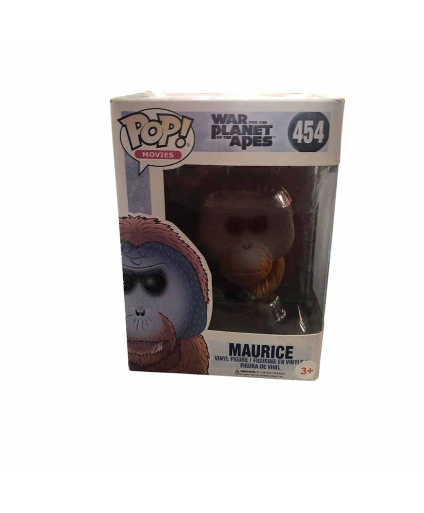 Funko Pop! Maurice #454 es una figura basada en War for the Planet of the Apes que representa al simio sabio Maurice con gran fidelidad al personaje cinematográfico. Fabricada en vinilo con el diseño clásico de la línea Pop!, mide alrededor de 9-10 cm y viene en caja con ventana para exhibición. Su popularidad entre coleccionistas del universo de “El planeta de los simios” la convierte en una pieza interesante tanto para exponer como para comercio.