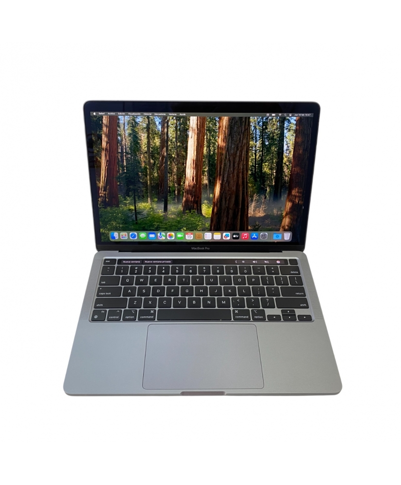 Un monstruo viene a vernos. El MacBook Pro de 13 pulgadas y el chip M1 se unen para ofrecer un rendimiento brutal. La CPU es hasta 2,8 veces más potente y los gráficos multiplican hasta por cinco su velocidad. El Neural Engine más avanzado acelera hasta once veces el aprendizaje automático. Y la autonomía llega a las 20 horas, lo nunca visto en un Mac. Por fuera sigue siendo nuestro portátil profesional más popular. Pero lo que hay dentro va a cambiarlo todo. Agárrate. Características: La potencia hecha chip. Ya está aquí. Nuestro primer chip diseñado específicamente para el Mac. El M1 de Apple es un sistema en chip (SoC) que reúne 16.000 millones de transistores e integra la CPU, la GPU, el Neural Engine, E/S y mucho más en un diseño minúsculo. Con un rendimiento top, tecnologías a medida y la mayor eficiencia del sector,1 el M1 no solo es un nuevo paso para el Mac. Es un antes y un después en su historia. Aprendizaje automático. Neural Engine de 16 núcleos. Neuronas supersónicas. El aprendizaje automático no solo permite meter el turbo a funciones como el análisis de vídeo, el reconocimiento de voz o el procesamiento de imágenes, sino que también las automatiza. El Neural Engine de 16 núcleos y las otras tecnologías avanzadas que incluye el chip M1 elevan el aprendizaje automático en el MacBook Pro a niveles estratosféricos. La potencia de macOS Big Sur con el chip M1. macOS Big Sur se ha desarrollado para aprovechar el potencial del chip M1 y transformar el Mac. ¿El resultado? Un rendimiento superior, mejoras en las apps, un nuevo diseño espectacular y prestaciones de privacidad y seguridad líderes del sector. Es nuestro software más potente, y está a la altura de nuestro hardware más avanzado. Pantalla Retina. La perfección salta a la vista. Con la asombrosa pantalla Retina, las imágenes tienen un gran nivel de detalle y realismo. El texto se ve con la máxima claridad. La retroiluminación por LED muestra unos negros intensos y unos blancos luminosos. La gama cromática amplia P3 multiplica los matices de verdes y rojos respecto al estándar sRGB. Además, todos los MacBook Pro vienen con tecnología True Tone, que ajusta el balance de blancos de forma automática a la temperatura del color de la luz ambiental para que las imágenes resulten más naturales. Cámara y micrófonos Te van a oír. Y a ver. Gracias al chip M1, la cámara FaceTime HD saca todo el partido a nuestro procesador de señal de imagen más avanzado. El resultado es una mejor calidad en las videollamadas y mayor detalle en las luces y sombras. Cuando estés en una reunión, grabando un podcast o de charla con los amigos, los nuevos micros con calidad de estudio se encargarán de que todos te oigan alto y claro. Magic Keyboard Palabras mayores. El teclado Magic Keyboard está pensado para que lo hagas todo mejor y en un santiamén. Hemos perfeccionado el mecanismo de tijera: verás que escribes de manera más precisa, cómoda y silenciosa. La Touch Bar te pone en bandeja los comandos que usas habitualmente. Así ahorras tiempo y tecleas menos. Y con Touch ID puedes iniciar sesión y pagar con total seguridad. Touch ID. Toca el sensor para desbloquear el Mac al instante y mantenlo pulsado para bloquearlo. Tu huella sirve para alquilar pelis, comprar apps o acceder a documentos protegidos y a los ajustes del sistema sin teclear la contraseña. Y cuando usas Apple Pay para comprar online, Touch ID añade automáticamente tu dirección y datos de facturación sin compartir el número de tu tarjeta de crédito. Especificaciones: Pantalla Pantalla Retina Pantalla retroiluminada por LED de 13,3 pulgadas (en diagonal) con tecnología IPS; resolución nativa de 2.560 por 1.600 a 227 píxeles por pulgada compatible con millones de colores Resoluciones adaptadas compatibles: 1.680 por 1.050 1.440 por 900 1.024 por 640 Brillo de 500 nits Gama cromática amplia (P3) Tecnología True Tone Chip Chip M1 de Apple CPU de ocho núcleos con cuatro núcleos de rendimiento y cuatro de eficiencia GPU de ocho núcleos Neural Engine de 16 núcleos Batería y alimentación Hasta 17 horas de navegación web inalámbrica Hasta 20 horas de reproducción de vídeo en la app Apple TV Batería integrada de polímeros de litio de 58,2 vatios hora Adaptador de corriente USB?C de 61 W Memoria 8GB Capacidad 256GB SSD Carga y ampliación Dos puertos Thunderbolt/USB 4 compatibles con: Carga DisplayPort Thunderbolt 3 (hasta 40 Gb/s) USB 3.1 Gen 2 (hasta 10 Gb/s) Auriculares Thunderbolt/USB 4 Teclado y trackpad Teclado Magic Keyboard retroiluminado con: 66 teclas, entre ellas 4 de flecha dispuestas en forma de T invertida Touch Bar Sensor Touch ID Sensor de luz ambiental Trackpad Force Touch con control preciso del cursor y sensibilidad a la presión. Permite activar el clic fuerte, los aceleradores, el trazo sensible a la presión y los gestos Multi?Touch. Touch Bar Trackpad Force Touch Conexión inalámbrica Wifi Conexión inalámbrica wifi 802.11ax (6.ª gen.) Compatible con las normas 802.11a/b/g/n/ac del IEEE Bluetooth Tecnología inalámbrica Bluetooth 5.0 Cámara Cámara FaceTime HD a 720p Compatibilidad de vídeo Admite simultáneamente la resolución nativa completa en la pantalla integrada compatible con millones de colores y: Un monitor externo con una resolución de hasta 6K a 60 Hz Salida de vídeo digital Thunderbolt 3 Salida DisplayPort nativa a través de USB?C Salidas VGA, HDMI, DVI y Thunderbolt 2 mediante adaptadores (se venden por separado) Audio Altavoces estéreo con alto rango dinámico Sonido estéreo amplio Compatibilidad con audio Dolby Atmos Conjunto de tres micrófonos con calidad de estudio y tecnología beamforming direccional Toma para auriculares de 3,5 mm