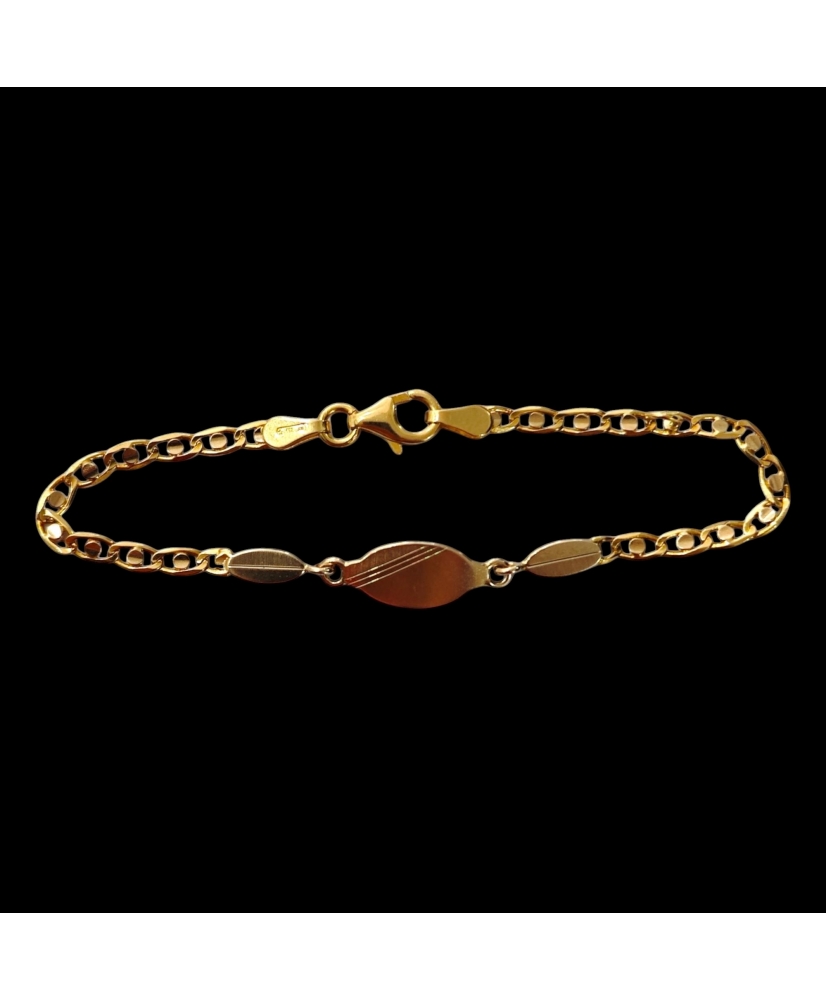 Pulsera bebé de oro de 18 ktes, con una longitud de 15 cm y un peso de 3,4 gramos. Diseño delicado y ligero, ideal para los primeros años con estilo y seguridad.