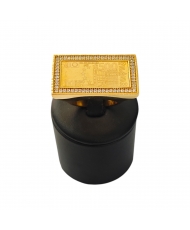 Sello de oro de 18 kt con gran diseño frontal de billete de 500 €, bordeado de circonitas brillantes que realzan su presencia. Tiene un peso de 43,90 gramos y corresponde a la talla 31. Pieza contundente, original y con mucho carácter.