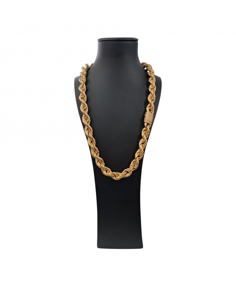 Cordón de oro de 18 quilates estilo salomónico con cierre de caja decorado con circonitas, de 81,20 gramos, con un largo de 70 cm y un ancho de 13 mm.