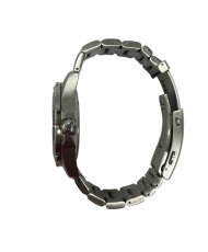 Un ingenioso mecanismo aporta flexibilidad adicional al cierre desplegable de este modelo: dos pequeños pulsadores permiten expandir el cierre algunos milímetros. Esta opción es ideal para quienes llevan el reloj sobre un traje de buceo o desean un poco más de holgura en torno a la muñeca.