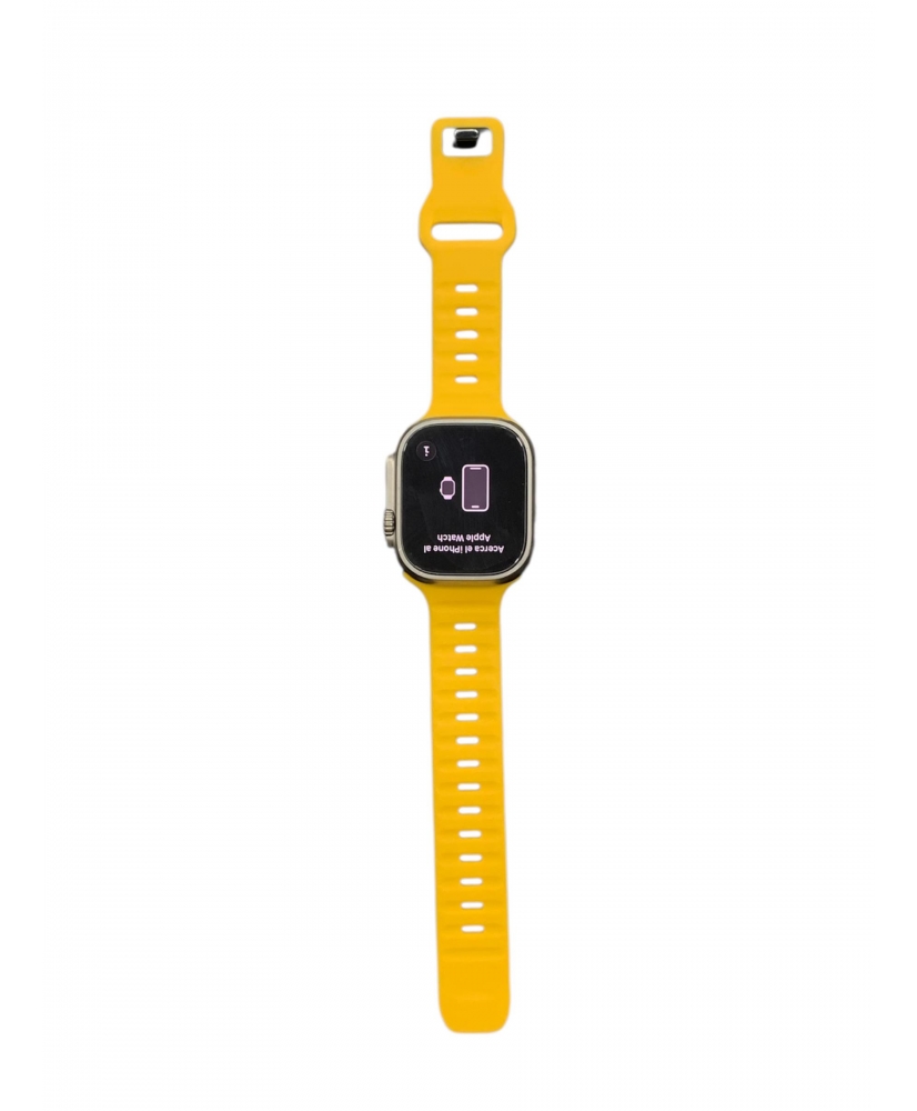 Apple Watch Ultra - Especificaciones técnicas Año de presentación: 2022 Acabados Titanio Natural Caja de titanio de calidad aeroespacial que ofrece el equilibrio perfecto entre peso, dureza y resistencia a la corrosión. Sus bordes elevados protegen el cristal delantero plano de zafiro por los cuatro costados. Increíblemente dura para hacer frente a las condiciones meteorológicas más extremas. Prestaciones GPS (L1 y L5), GLONASS, Galileo, QZSS y BeiDou Brújula Altímetro siempre activo Resistencia al agua 100 metros5 Certificación IP6X de resistencia al polvo2 Sometido a las pruebas MIL‑STD 810H15 Sensor de oxígeno en sangre (app Oxígeno en Sangre)3 Sensor eléctrico de frecuencia cardiaca (app ECG)4 Sensor óptico de frecuencia cardiaca de 3.ª generación Llamadas de emergencia internacionales6 Emergencia SOS1 Itinerancia7 Acelerómetro de fuerza g alta Con fuerzas de hasta 256 g y detección de caídas y de accidentes Giroscopio de alto rango dinámico Sensor de luz ambiental Sensor de temperatura del agua Profundímetro Apto para buceo hasta 40 metros Doble altavoz 40 % más potente que el del Series 8 Conjunto de tres micrófonos con tecnología beamforming y reducción del ruido del viento Apple Pay GymKit 32 GB de capacidad Cubierta trasera de cerámica y cristal de zafiro Pantalla 49 mm 410 x 502 píxeles Superficie de pantalla de 1.185 mm² Pantalla Retina OLED LTPO2 siempre activa Brillo de hasta 3.000 nits Chip Chip S8 SiP con procesador de doble núcleo de 64 bits W3 Chip inalámbrico de Apple Chip U1 (Banda ultraancha)10 Conectividad LTE y UMTS8 Modelo GPS + Cellular Más información sobre los operadores disponibles Wifi 802.11b/g/n a 2,4 y 5 GHz Bluetooth 5.3 Alimentación Batería recargable integrada de iones de litio Hasta 36 horas de autonomía9 Hasta 18 horas de autonomía (LTE) Cable de carga rápida magnética a USB‑C Características medioambientales11 Wolframio 100 % reciclado en el Taptic Engine Tierras raras 100 % recicladas en todos los imanes Estaño 100 % reciclado en el chip SiP Eficiencia energética12 Embalaje sostenible13 Vidrio de la pantalla sin arsénico14 Sin mercurio, BFR, PVC ni berilio14 Dimensiones 49 mm Alto: 49 mm Ancho: 44 mm Grosor: 12 mm Peso 49 mm Titanio: 61,3 g